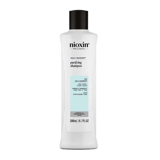 NIOXIN Scalp Recovery Purifying Shampoo is a dermatologist-tested formula designed to cleanse, calm, and restore comfort to dry, itchy, and flaky scalps. Specifically developed for individuals dealing with dandruff, dryness, or scalp irritation, this purifying shampoo gently removes impurities, product build-up, and excess oils while delivering essential moisture. Enriched with a unique blend of soothing ingredients, it helps rebalance the scalp’s natural barrier, leaving it feeling clean, hydrated, and refreshed. Available in various sizes to suit both home and salon use, it’s an essential part of the Nioxin Scalp Recovery System.