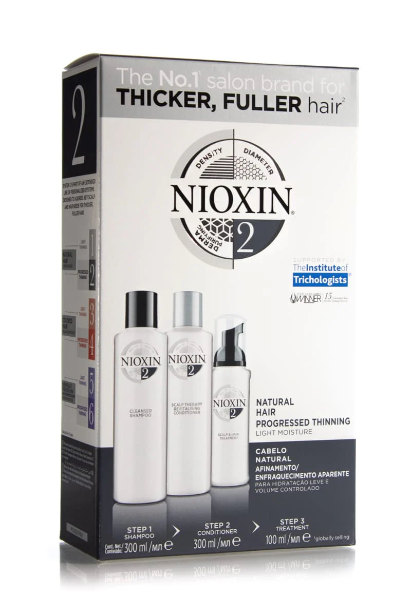 Transform your hair with the Nioxin System 2 Trio Pack. Specifically designed for those with thinning, fine, natural hair, this hair care solution delivers a denser-looking mane and healthy shine while protecting the scalp. Remove follicle-clogging residue, strengthen against damage, and refresh your scalp with this must-have pack.