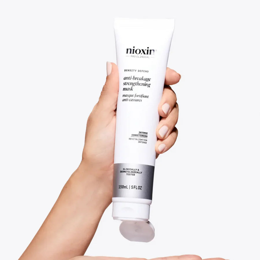 Nioxin Density Defend Anti-Breakage Mask is a lightweight, leave-in treatment specifically designed to reduce hair breakage and help preserve hair density. Enriched with DensiProtect Technology, this mask deeply nourishes fragile strands, improving manageability and softness while reinforcing the hair’s protective barrier. Ideal for colour-treated and thinning hair, it helps reduce damage caused by brushing and styling without weighing hair down, leaving it feeling thicker and healthier.
