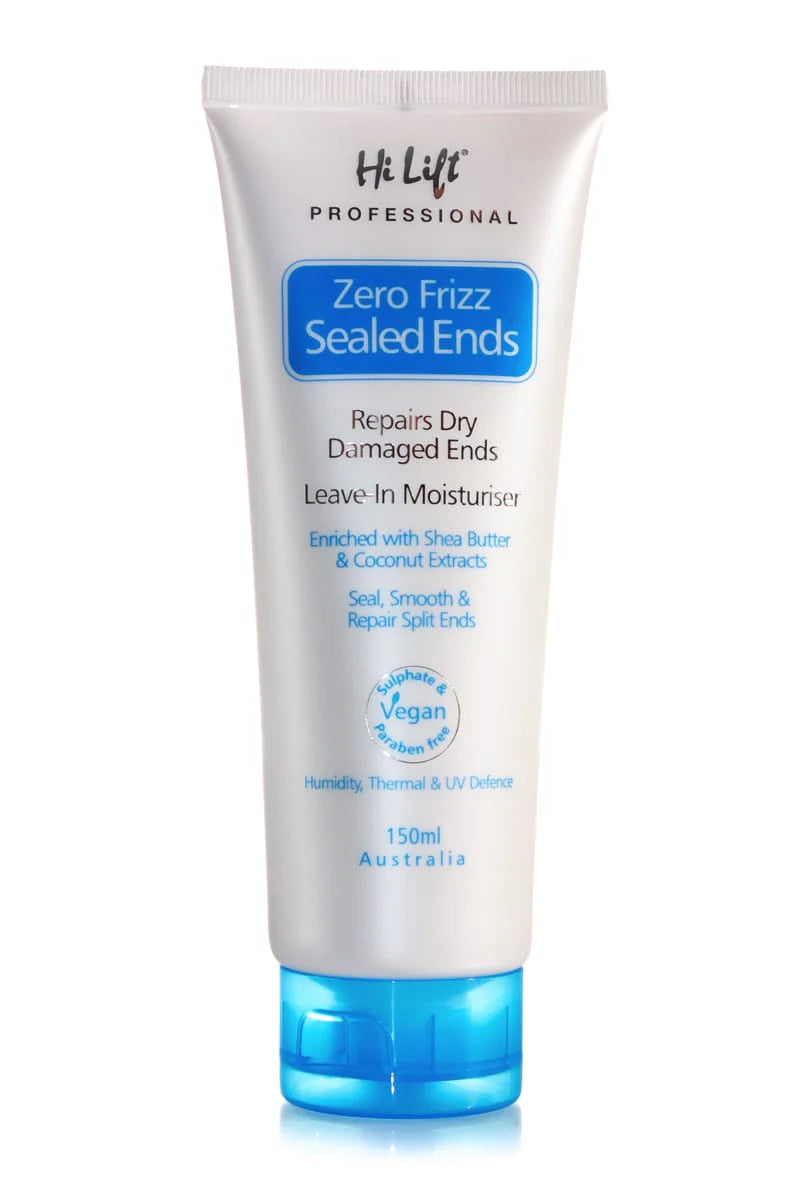 Tame frizz and repair split ends with Hi Lift Professional Zero Frizz Sealed Ends. Enriched with Shea Butter and Coconut Extracts, this leave-in moisturiser seals, smooths, and strengthens hair, leaving it silky, frizz-free, and protected.