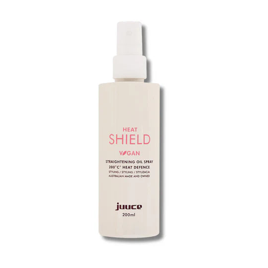 Juuce Heat Shield protects hair during and after 200C heat styling by locking in moisture and nutrients that help to extend colour life and strengthen resistance to breakage.