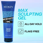 Redken Max Sculpt Gel 250ml is a super strong hold hair gel that empowers styles to stay put with long lasting control. This professional product provides maximum hold to flake-free control and provides added thickness and body with a high shine finish.