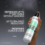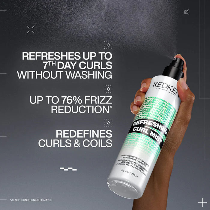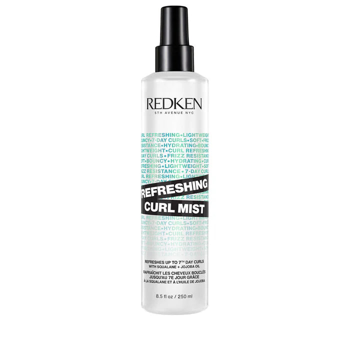 Redken's Refreshing Curl Mist is a lightweight, leave-in spray that refreshes, re-hydrates, re-defines and reactivates flat, frizzy or deflated curls in between washes.