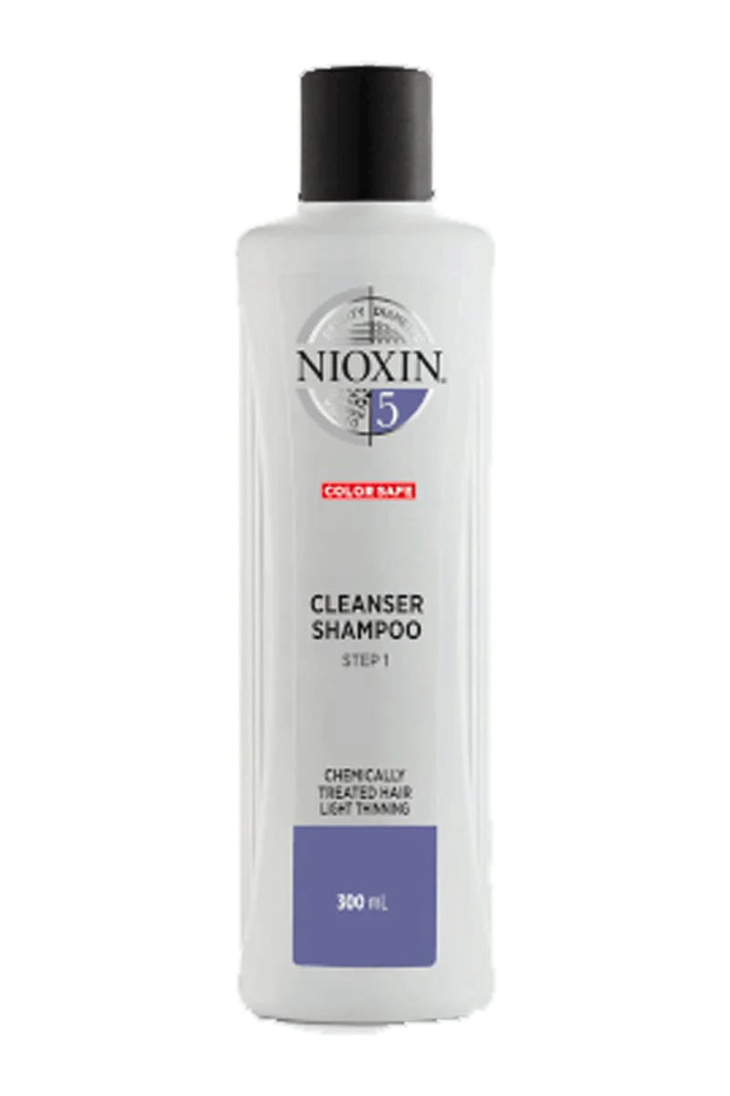 Transform your chemically treated hair with Nioxin System 5 Cleanser Shampoo. Designed for light thinning, this colour safe shampoo uses Pro-Color Shield Technology to eliminate scalp build-up and promote healthy hair growth. For best results, pair with System 5 Scalp Therapy Revitalising Conditioner and Scalp & Hair Treatment.