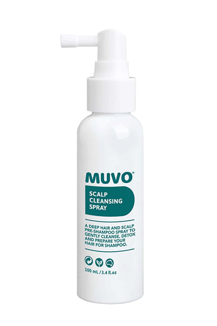 Directions: Before shampooing, spray directly onto dry scalp. Massage in and wait for 3-5 minutes. Rinse thoroughly with water. Follow with MUVO Deep Cleanse Shampoo for excessive build-up. Not recommended for use on tape hair extensions.