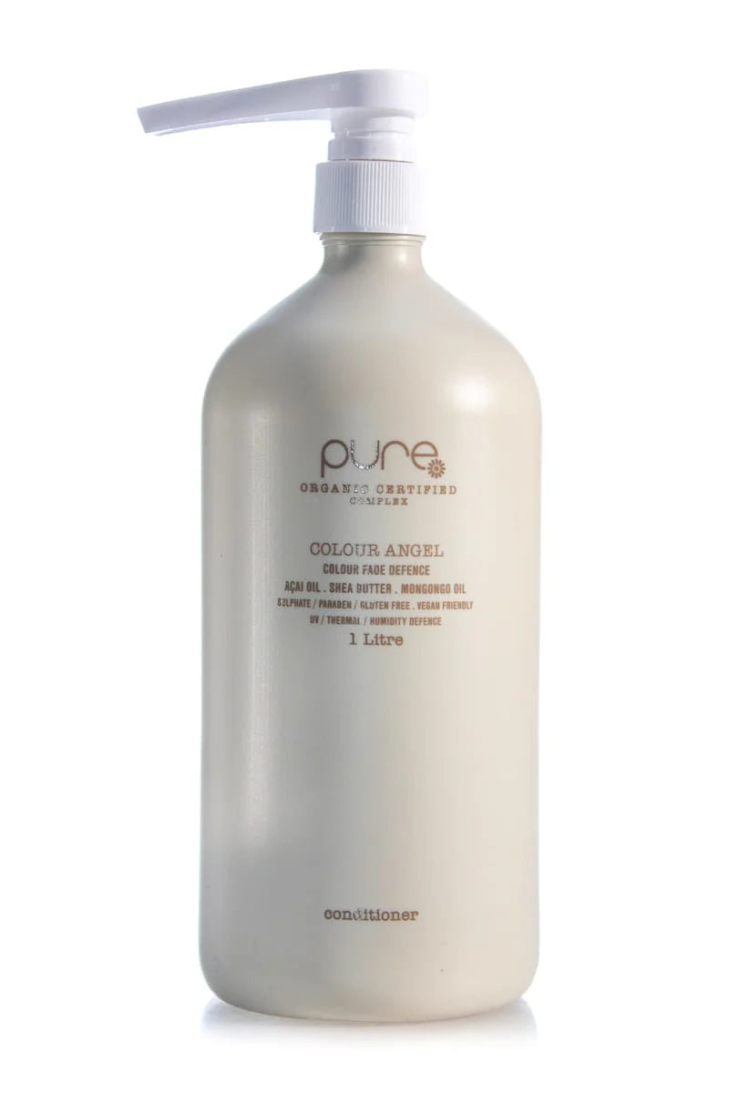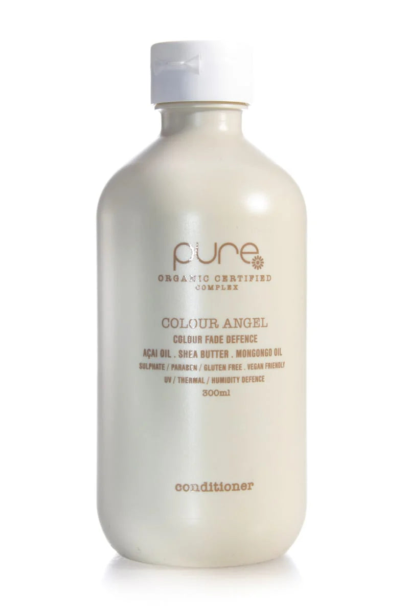 PURE COLOUR ANGEL CONDITIONER with exclusive ‘pure complex’TM (certified 100% organic extracts) conditions all coloured hair while locking in colour and shine.