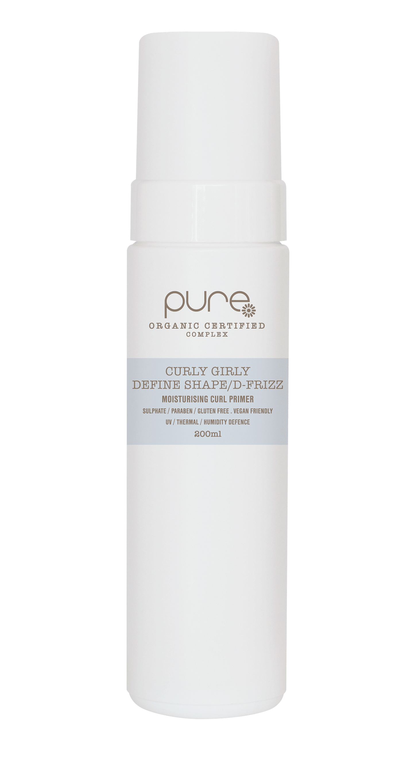PURE CURLY GIRLY seals in moisture and definition for all curly, unruly hair. Lightweight foam to smooth frizz and define curls without crunch. Can be used on dry hair for added control on ends. With exclusive ‘pure complex’TM (certified 100% organic extracts).