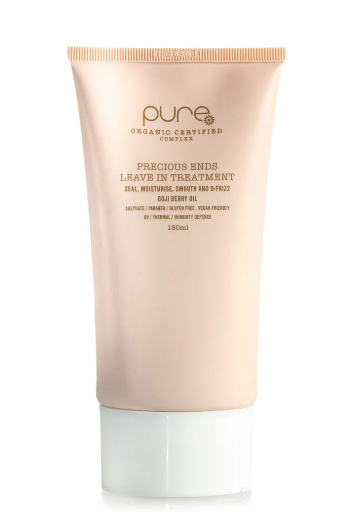 PURE PRECIOUS ENDS with goji berry oil helps to seal ends, locks in colour and protects against styling and UV damage. Exclusive ‘pure complex’TM (certified 100% organic extracts), repairs, smoothes and softens frizzy, damaged and long hair.