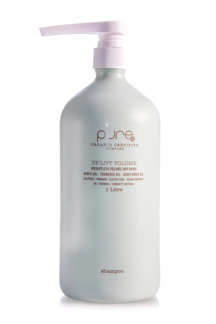 PURE up.lift volume SHAMPOO gently cleanses hair adding weightless volume to fine or flat hair. Exclusive ‘pure complex’TM (certified 100% organic extracts) and Buriti Oil up-lifting volume, adding fullness and shine.