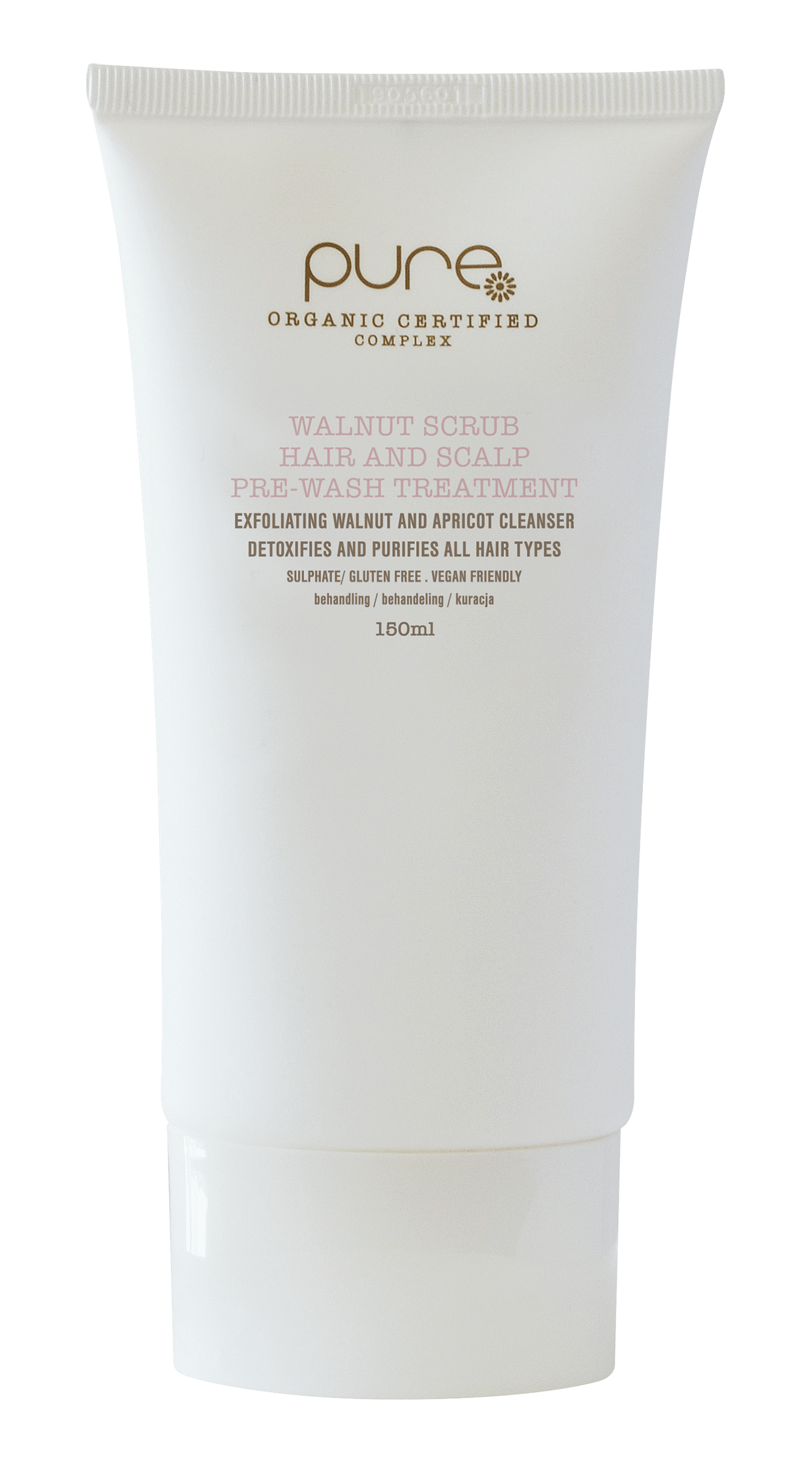PURE WALNUT SCALP SCRUB offers a gentle exfoliating pre-wash treatment designed to deeply detoxify your hair and scalp.