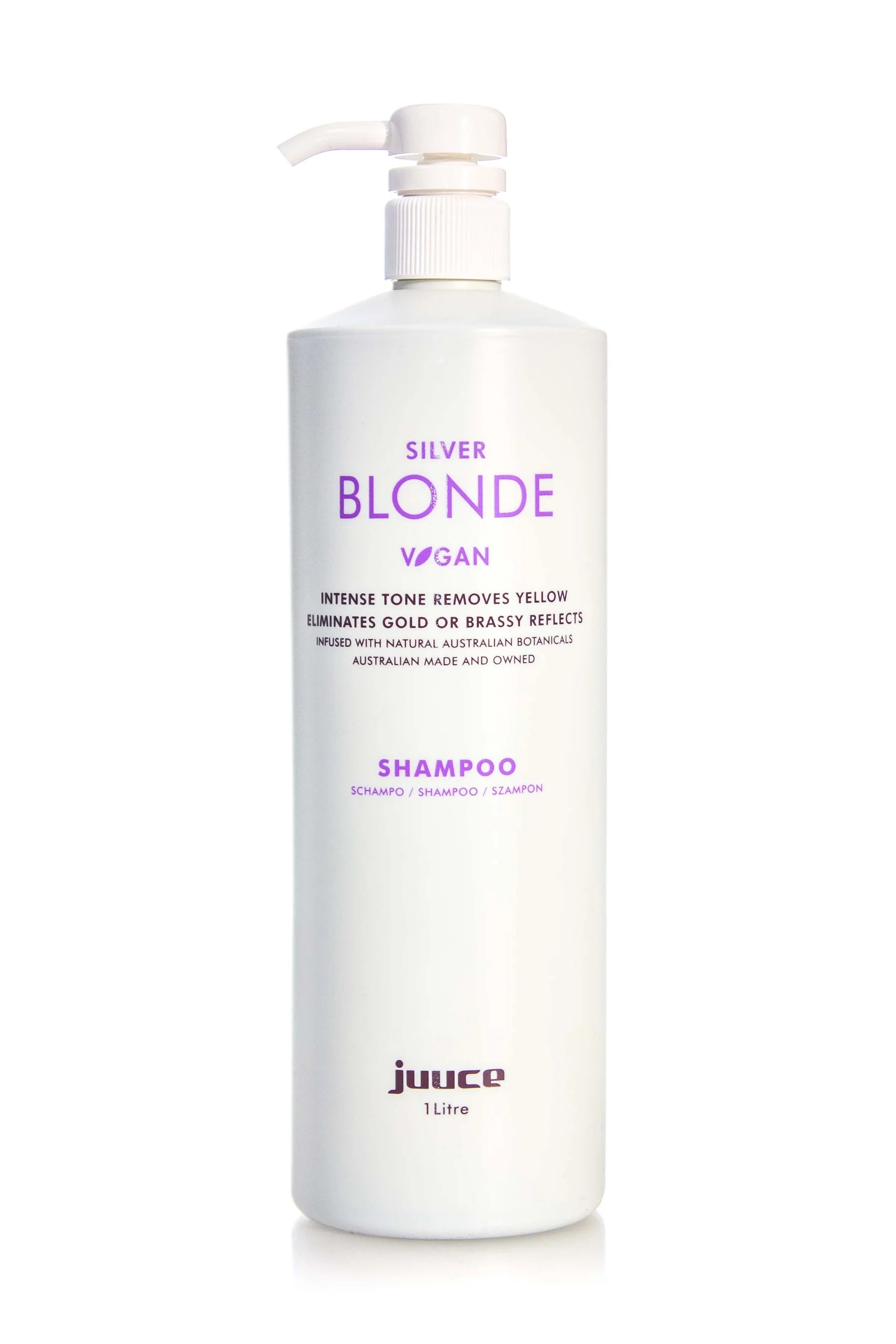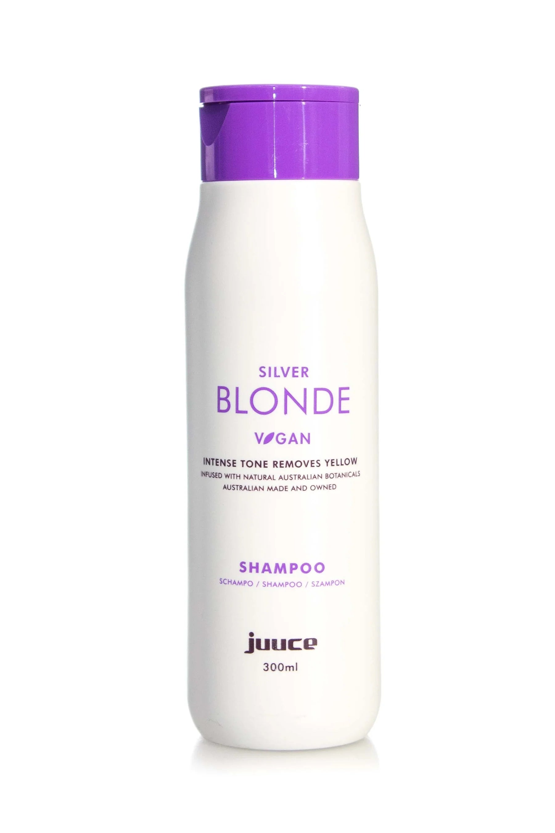 Juuce Silver Blonde Shampoo with intense violet tones reduces unwanted gold and yellow reflect in blonde, bleached or grey hair.